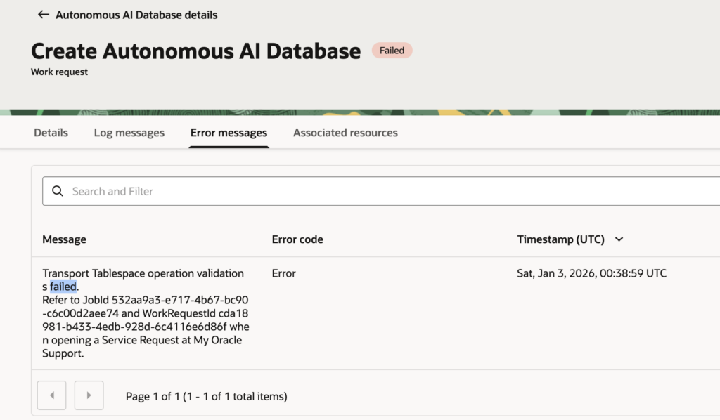 - A precheck mechanism to validate that the Autonomous AI Database can access the Object Storage buckets and files before the creation starts (for example, confirming that dynamic groups and IAM policies are correctly configured).