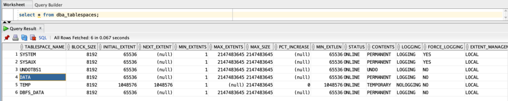 create tablespace TBS_AZ_DATA datafile size 10M;