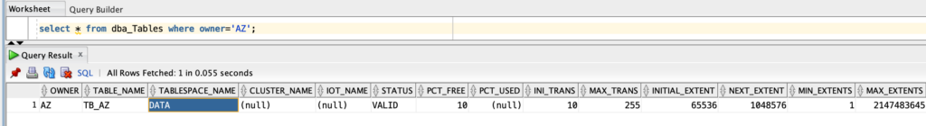 create table az.tb_az(id number) tablespace tbs_az_data;
