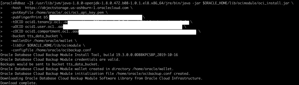 Oracle Database Cloud Backup Module Install Tool, build 19.3.0.0.0DBBKPCSBP_2019-10-16