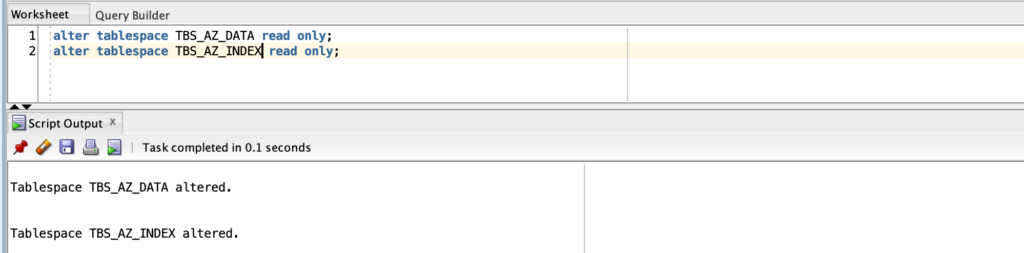 Let’s change the tablespaces to read-only and run the script to back up our database: