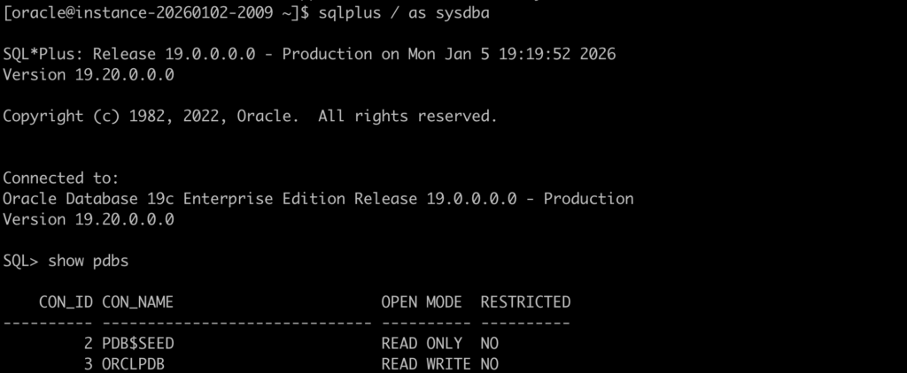 For this test, I will use an Oracle Database 19c and a non-incremental backup. In a real-world, critical production migration, you should use incremental backups instead.