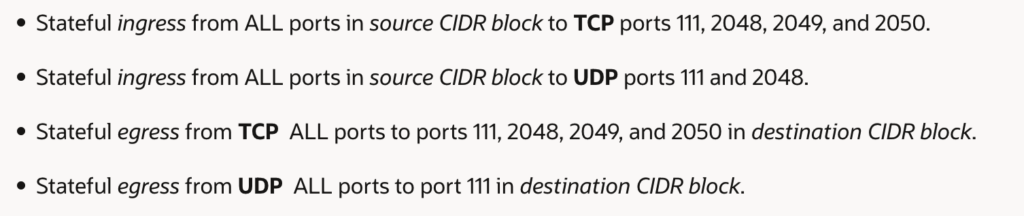 Create a File System by providing Export and Mount Target information. Refer to How to Attach a File System to your Autonomous AI Database and use the guidelines for creating the file system. User has to mount the File System to the source database host(s) using the Mount Commands provided by the File System -> Export. Refer to Mounting File Systems From UNIX-Style Instances for detailed instructions.