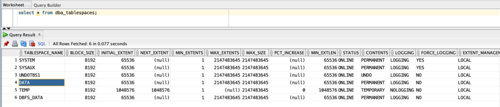 create tablespace TBS_AZ_DATA datafile size 10M;